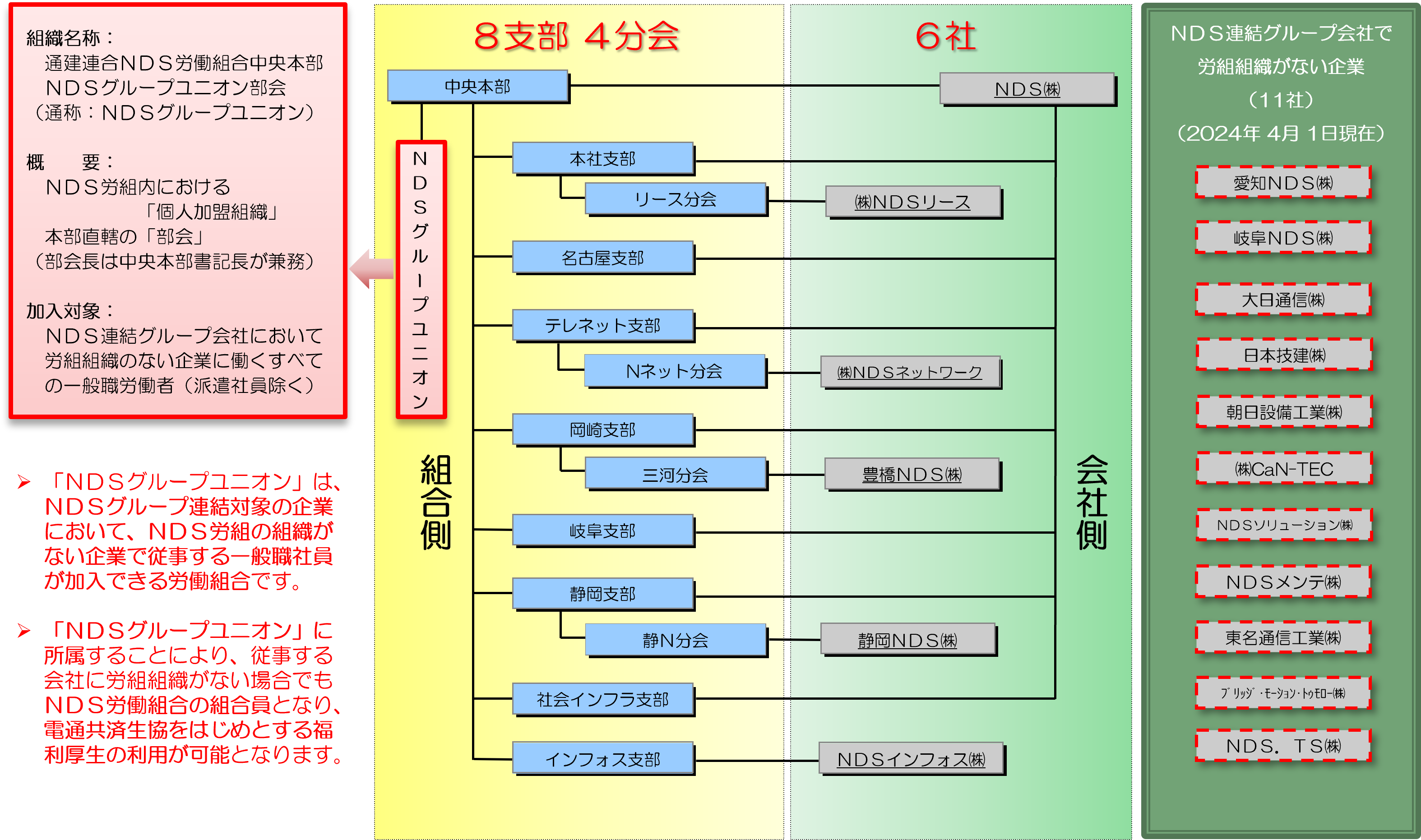 【NDS労働組合 および NDSグループ各社 概要図】